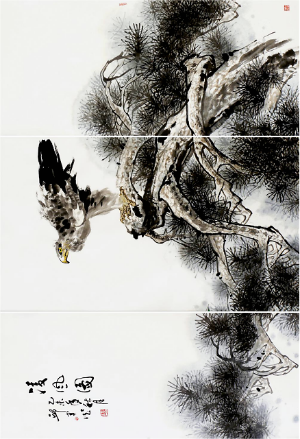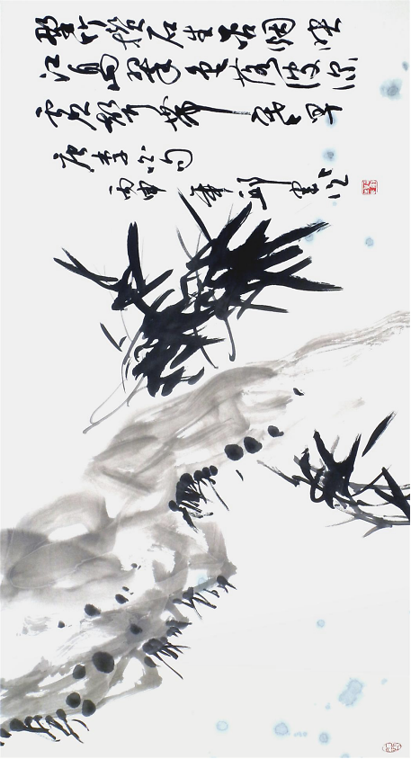 多年來(lái),邱君結(jié)合自己的創(chuàng)作實(shí)踐對(duì)筆墨進(jìn)行了深入的探索和研究,并通過(guò)自己的創(chuàng)作來(lái)證實(shí)了中國(guó)畫獨(dú)具的東方哲學(xué)意味和水墨世界的無(wú)窮魅力。邱君在其繪畫藝術(shù)中追求的并非形質(zhì)的逼真,他更看重的是作品的氣勢(shì)、氣韻和氣質(zhì)。他注重在萬(wàn)千變化的詩(shī)意生活中體悟造化之道,以藝術(shù)家的情懷去表現(xiàn)自然之美。從其作品看出,他巧妙地進(jìn)入水墨寫意之境,在畫面中,畫家的筆墨表現(xiàn)功能、傳情功能、形式美功能,三者兼而有之,溶為一體。加之以書入畫,固他的用筆疾徐得法,沉實(shí)蒼勁,與章法布局結(jié)為一體,從而使其作品流露出奇崛清麗之風(fēng)神。