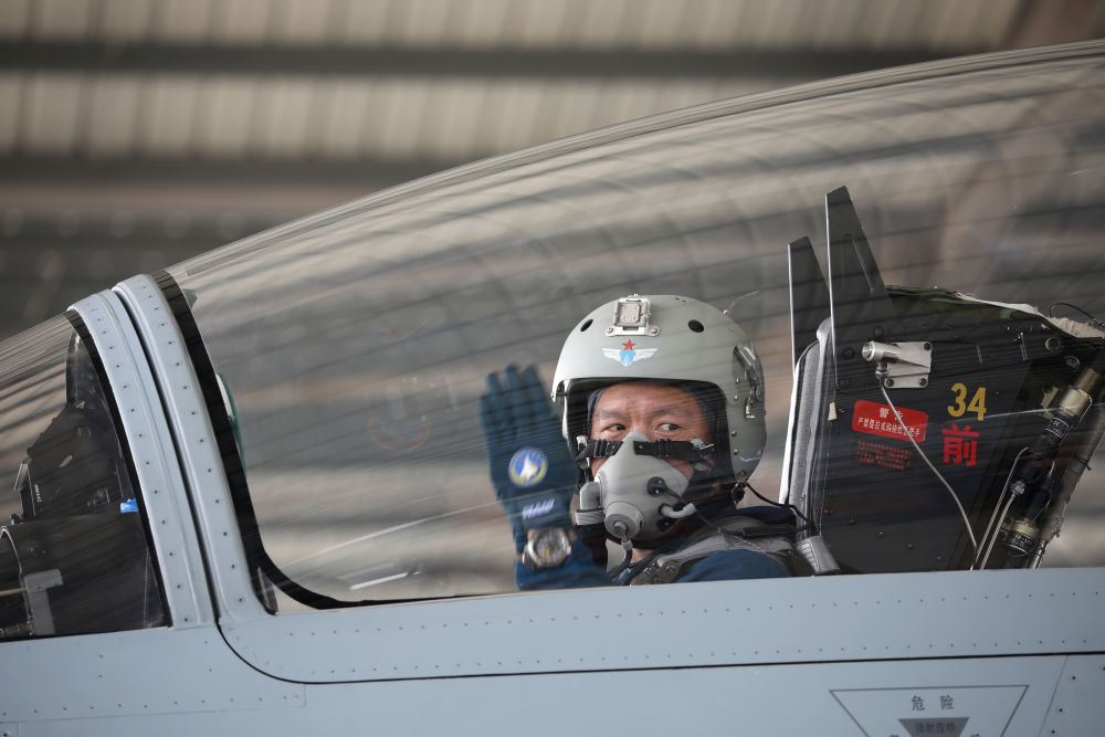 2月23日,復(fù)飛重返戰(zhàn)位的一等功空軍飛行員王建東手勢示意機(jī)組,準(zhǔn)備滑出。 黃演莊 攝
