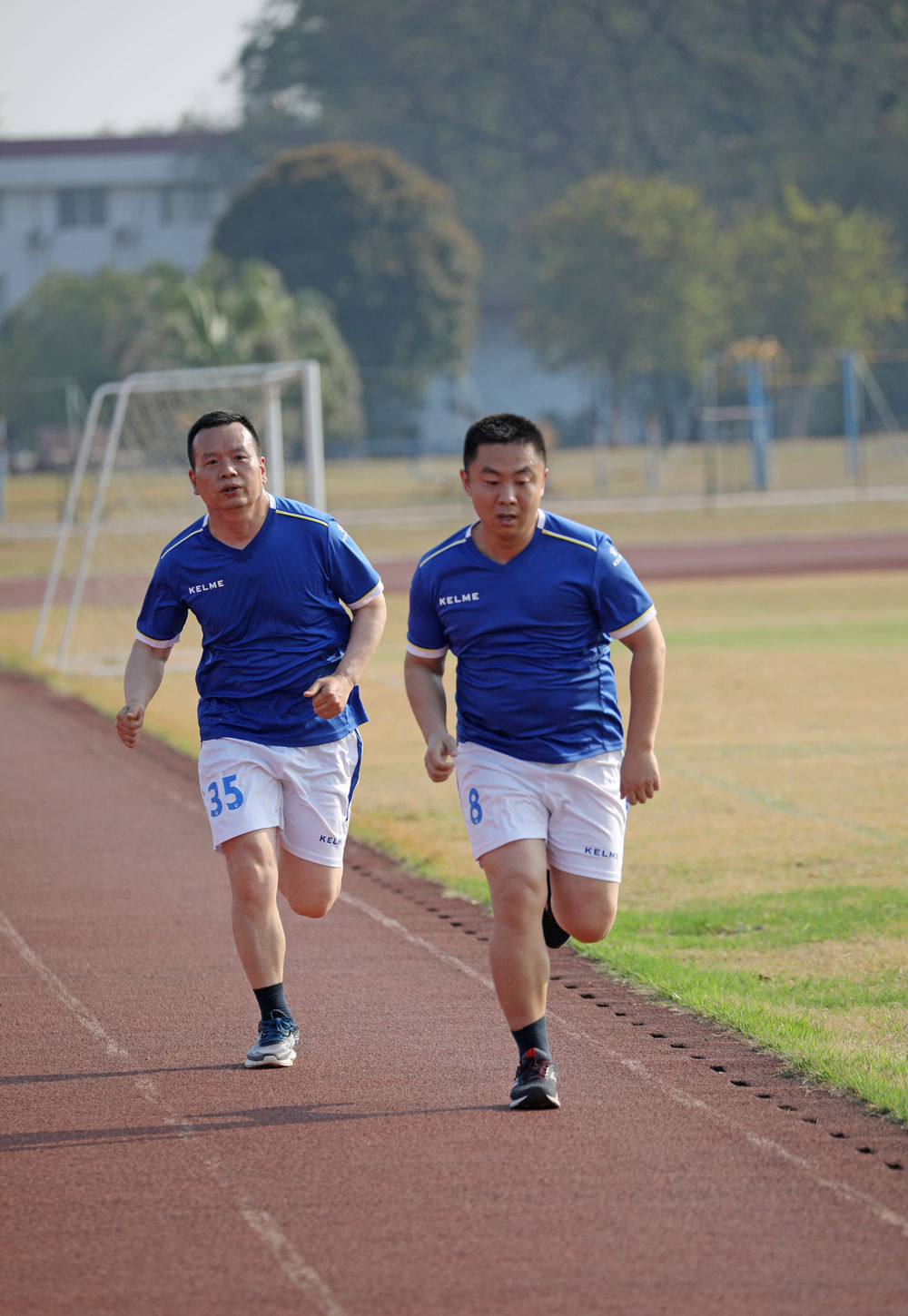 復(fù)健過程中,王建東和戰(zhàn)友一起沖刺。 黃演莊 攝