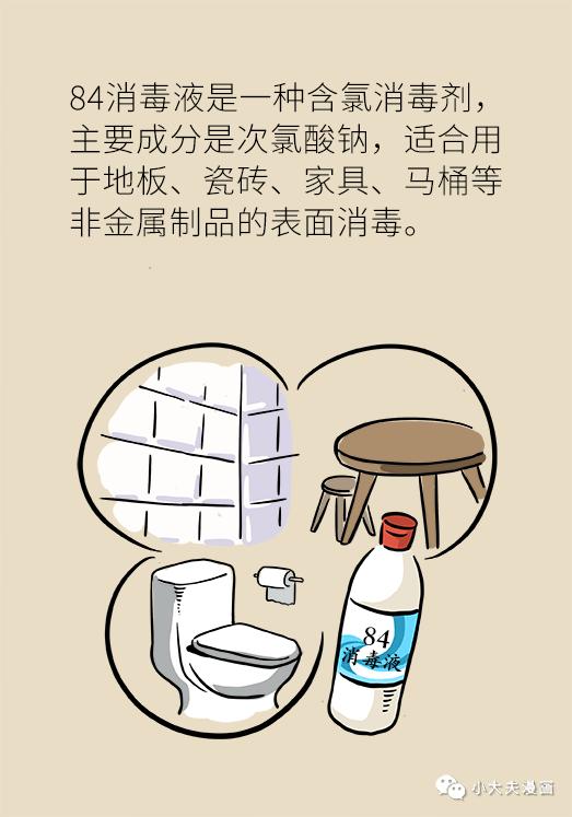 84消毒液是一種含氯消毒劑,主要成分是次氯酸鈉。適用于地板瓷磚、非金屬餐桌和茶幾、馬桶等外表面的消毒,但不適用金屬消毒。
