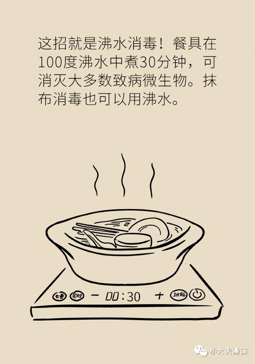 另外,餐具在100度沸水中煮30分鐘,可消滅大多數(shù)致病微生物。