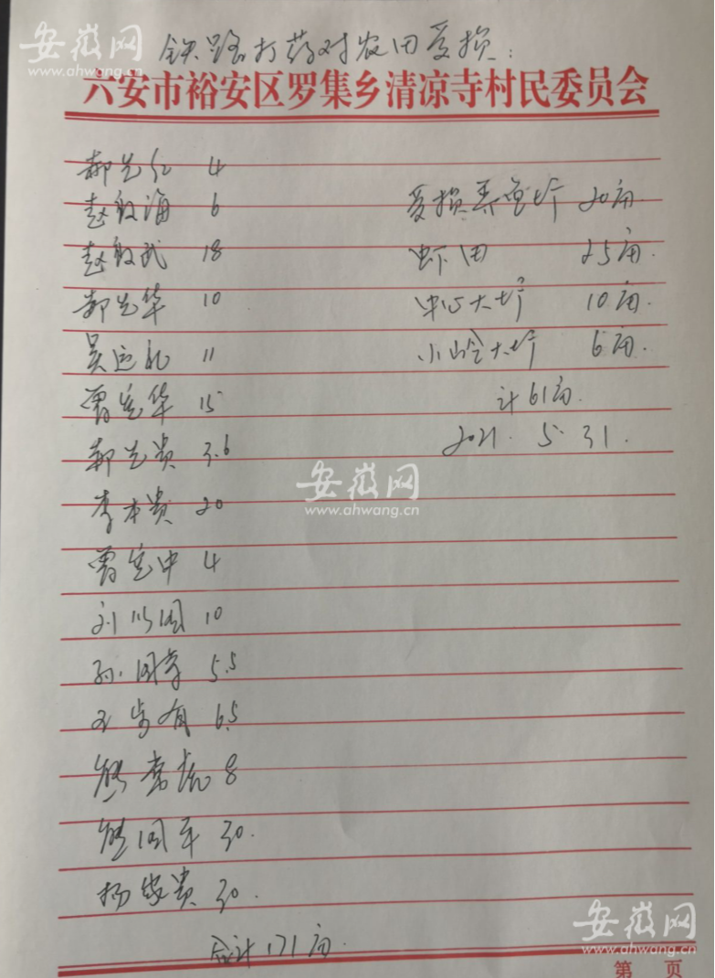 “我們清涼寺村目前來(lái)反映問(wèn)題的受害農(nóng)戶有15戶,涉及的秧田約有170畝,水面(水塘、龍蝦田)約有60畝。都是同一時(shí)間發(fā)生的,而且都在阜六鐵路沿線兩側(cè)?!鼻鍥鏊麓妩h支部書(shū)記王步才說(shuō)。同時(shí)來(lái)反映受損情況的還有相鄰的陳家樓村5戶農(nóng)民,他們反映受損秧田面積有90多畝,他們都是種田大戶,因此損失慘重。