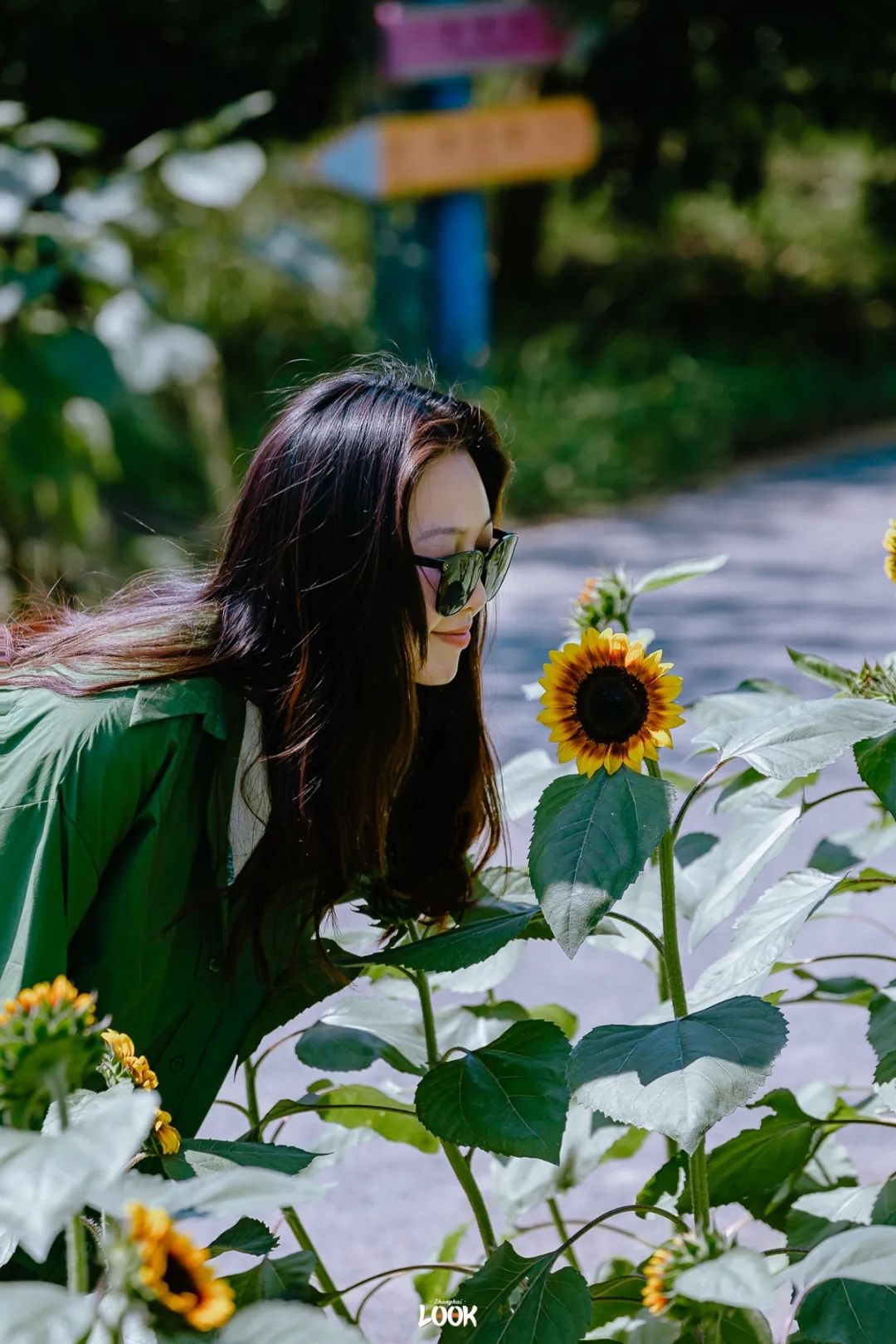 梅園外的小路邊,向日葵已準(zhǔn)備就緒,燦爛而熱烈。這個(gè)十一假期,便是向日葵的盛花期。