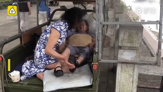 四川峨眉山75歲老人蔡冬鳳,年幼時生了一場大病,導(dǎo)致她的雙手雙腳全部截肢。