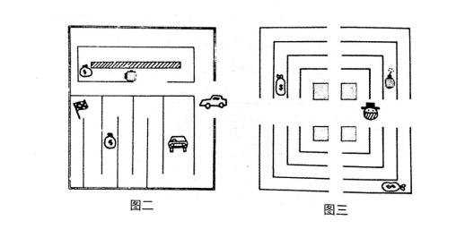 我不很明白這句話,不過(guò)他這時(shí)向滿妹要了紙筆,把其中兩個(gè)格子的迷宮路線(圖四、圖五)畫給我看。