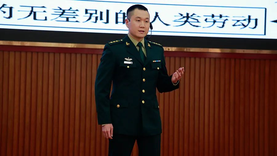 選手丁東與戰(zhàn)友們分享的是自己研讀《資本論》心得,他告訴戰(zhàn)友們要摘掉“有色眼鏡”,科學(xué)客觀地用辯證唯物主義認(rèn)知世界,用馬克思主義基本原理改造世界,喊出“勞動(dòng)人民最光榮”“共產(chǎn)主義必將勝利”的正道強(qiáng)音。