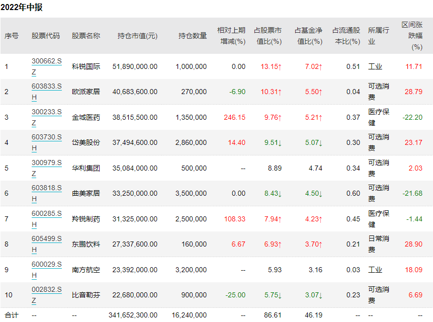 科銳國(guó)際(300662)、歐派家居(603833)、金城醫(yī)藥(300233)、岱美股份(603730)、華利集團(tuán)、曲美家居(603818)、羚銳制藥(600285)、東鵬飲料(605499)、南方航空、比音勒芬(002832)。其中,金城醫(yī)藥和羚銳制藥獲大比例增持,華利集團(tuán)和南方航空新進(jìn)前十,溫氏股份(300498)和長(zhǎng)江電力(600900)退出前十。