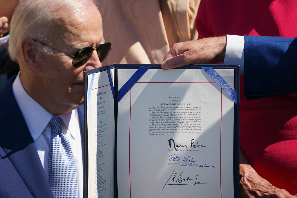 當?shù)貢r間2022年8月9日,美國首都華盛頓特區(qū),美國總統(tǒng)拜登在白宮簽署《芯片和科學法案》。 人民視覺 圖
