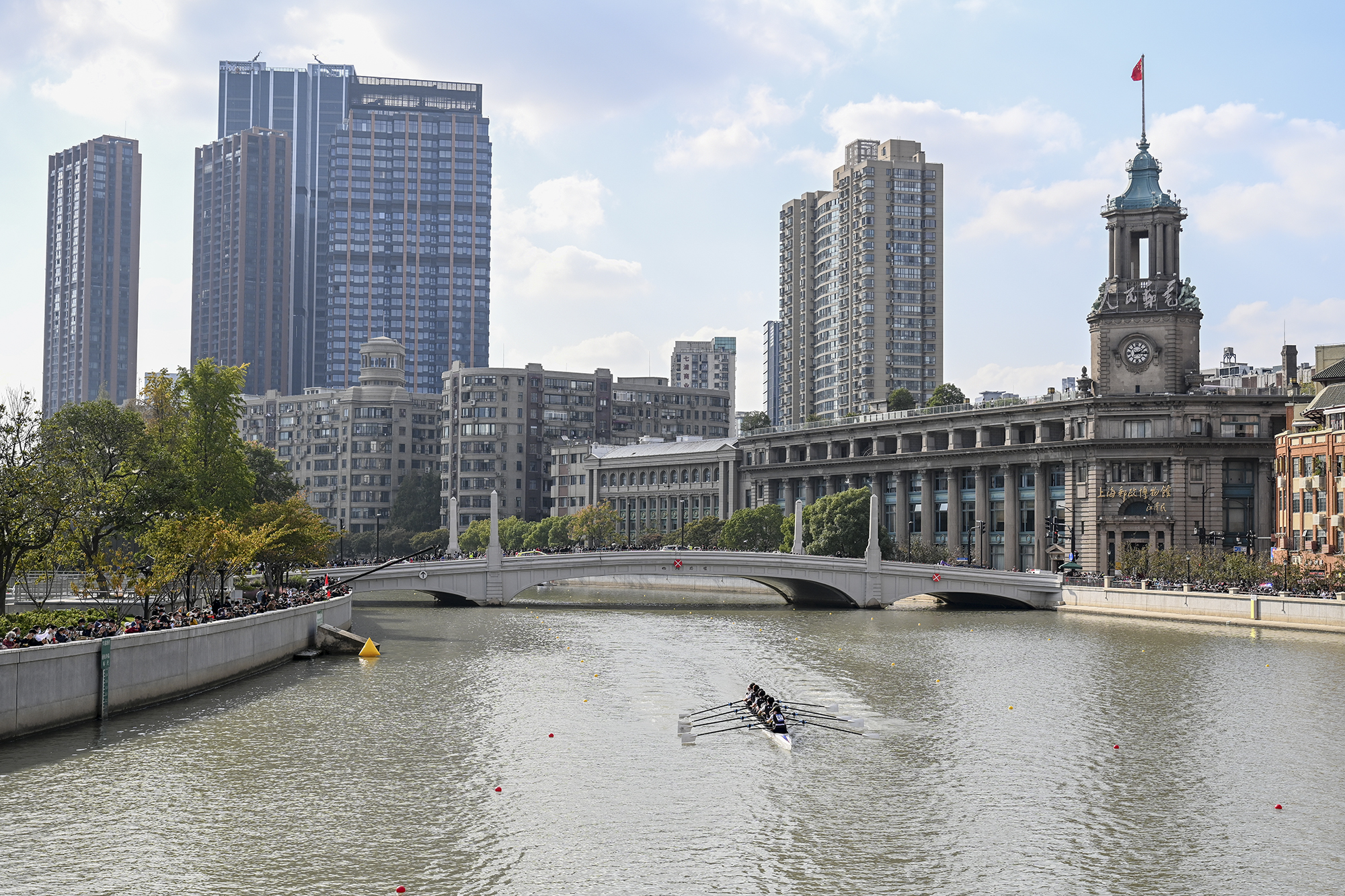 金秋十月,天清氣朗,一串串同舟共濟(jì)的“音符”在上海蘇州河上奏響“運(yùn)動(dòng)交響樂”。2022年10月29日,上海賽艇公開賽在蘇州河上開槳啟航。