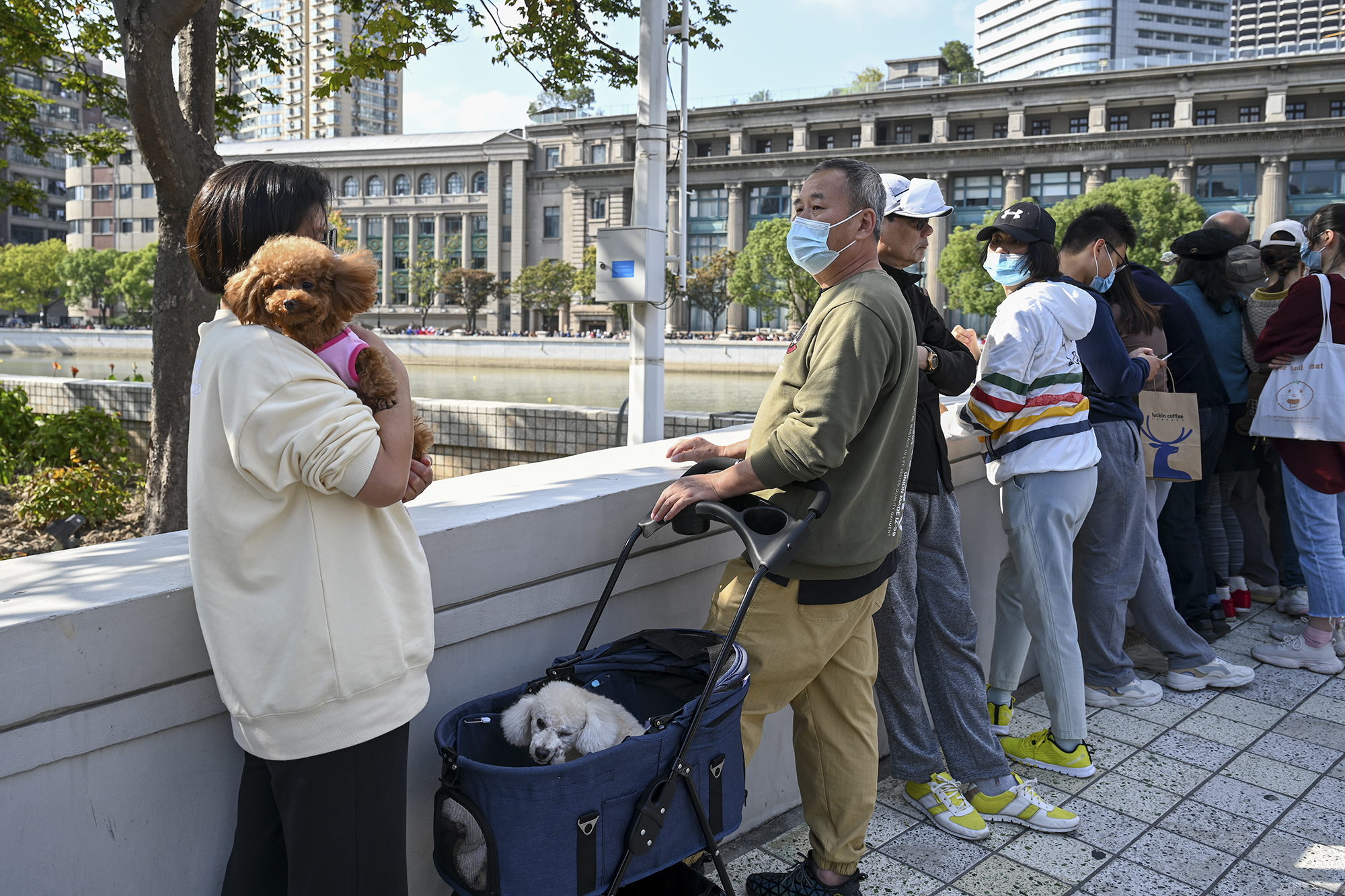 張女士和愛人帶著兩只狗狗前來觀看比賽。張女士夫婦均已退休,住在蘇州河附近。下午2點(diǎn)的比賽,張女士夫婦不到12點(diǎn)半就過來等候了?!半y得好天氣,狗狗們也一起和我們出來熱鬧熱鬧?!?/p>