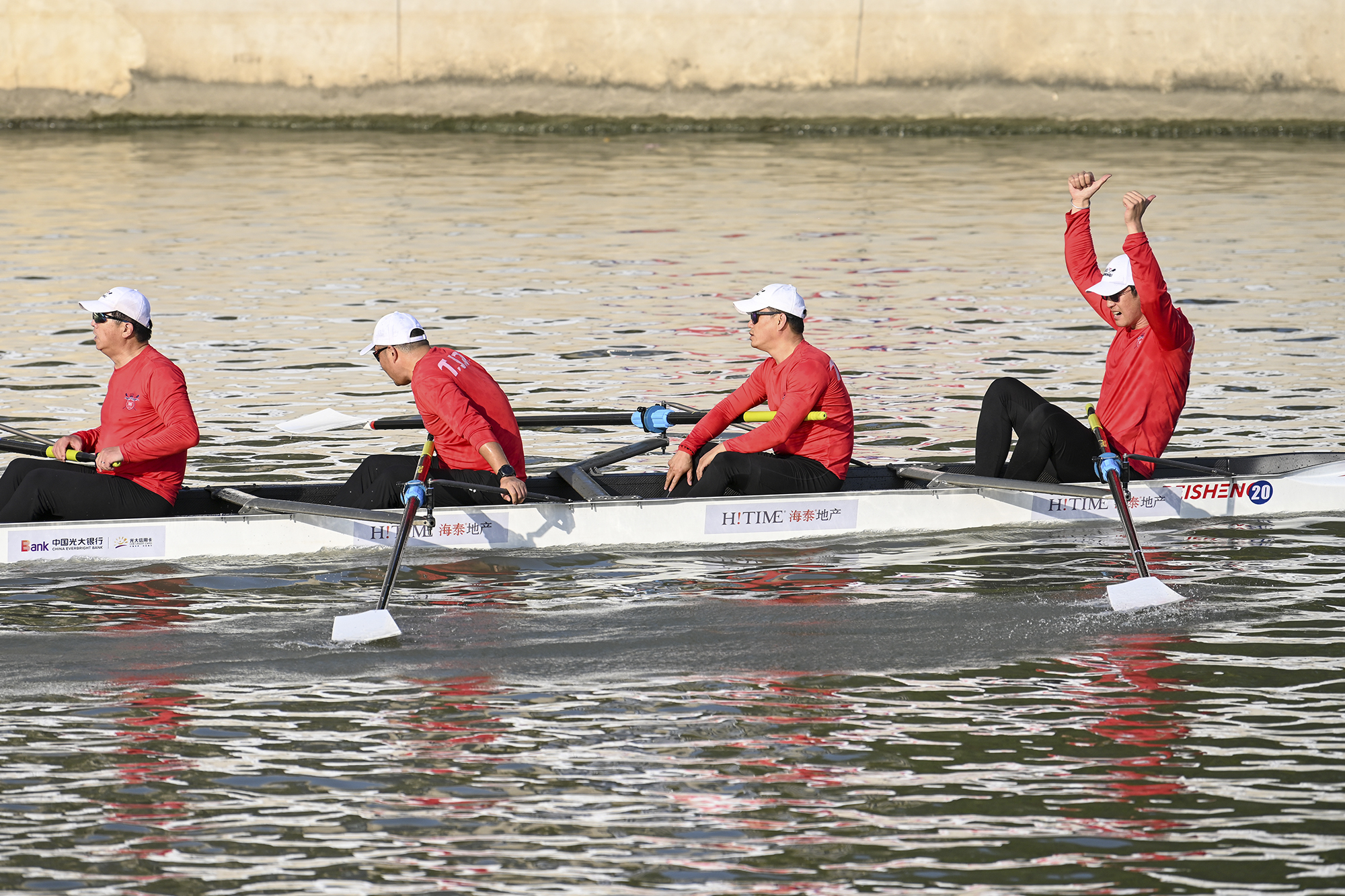 在第一天的比賽中,海洋大學(xué)隊(duì)獲得男子八人單槳有舵手高校組冠軍;南京艇友隊(duì)獲得該項(xiàng)目俱樂部組冠軍;山東山禾隊(duì)、山東奧強(qiáng)隊(duì)分別獲得該項(xiàng)目男子專業(yè)組、女子專業(yè)組的冠軍。此外,同濟(jì)大學(xué)隊(duì)獲得混合八人單槳有舵手高校組冠軍,錦江國際隊(duì)獲得該項(xiàng)目俱樂部組冠軍。