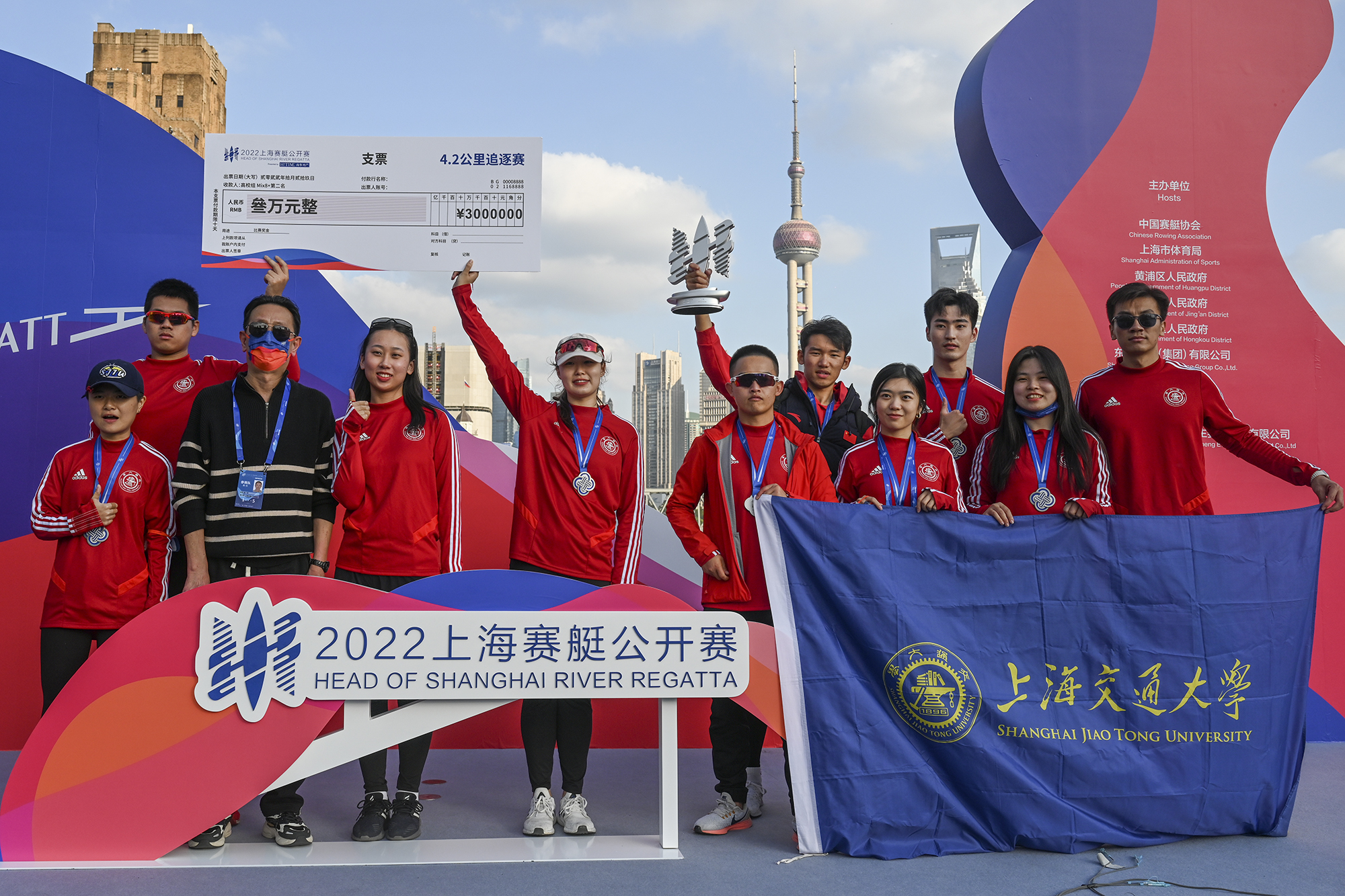 上海交大隊(duì)獲得混合八人單槳高校組亞軍。