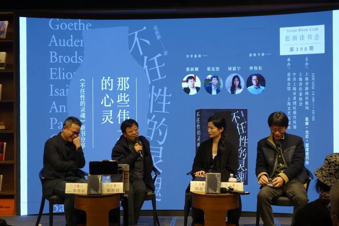 12月10日,張新穎攜新作與評論家張定浩、李偉長,作家周嘉寧做客思南讀書會,與讀者就如何生活與創(chuàng)作,如何相處與自處等話題進行了分享。