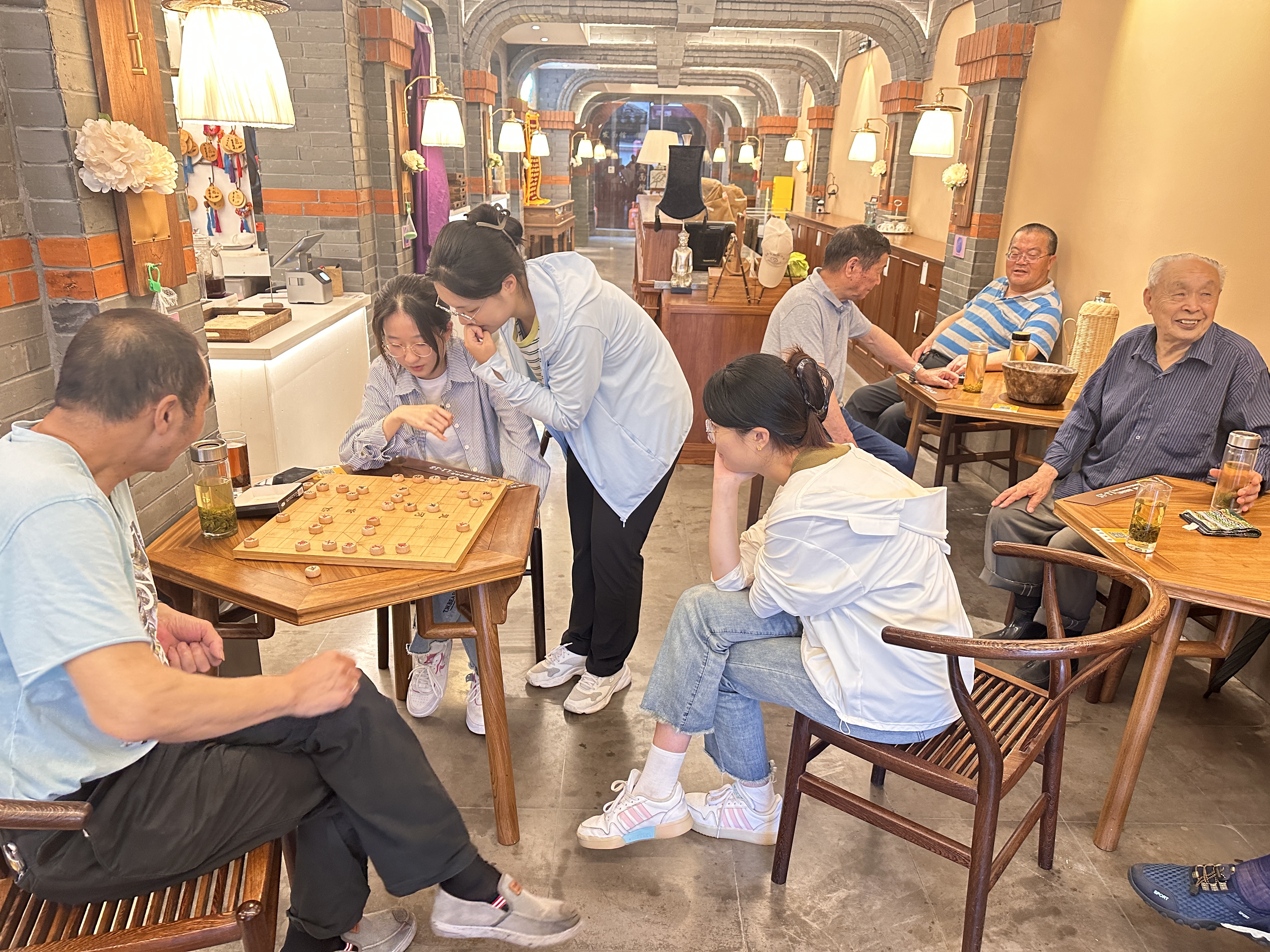 當(dāng)楊金大做好一切準(zhǔn)備工作,陸陸續(xù)續(xù)地,鎮(zhèn)上的老人們或開著小三輪,或拄著拐杖,來到茶樓,有的徑直去到自己喜歡的座位,有的自己倒一杯免費(fèi)茶,還有的小心翼翼打開自帶的茶葉包……因早茶時(shí)段管理茶樓的和來喝茶的,多半是六十歲朝上,甚至九十多歲的老人,因此得名“千歲早茶”。江虹蔚透露,現(xiàn)在,管理“千歲早茶”的,也是一支12人的老年人志愿者隊(duì)伍,每一任開門人都由大家推選。