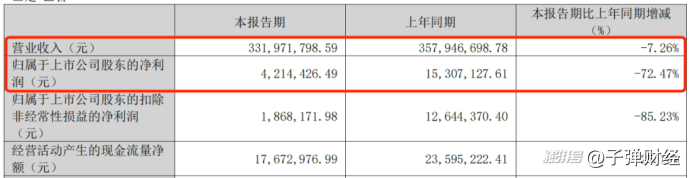 進(jìn)入2025年,全聚德業(yè)績下滑的態(tài)勢仍未停止。近日,全聚德披露2025年一季報(bào),報(bào)告期內(nèi),公司實(shí)現(xiàn)營業(yè)收入3.32億元,同比減少7.26%;歸母凈利潤421.44萬元,同比減少72.47%。