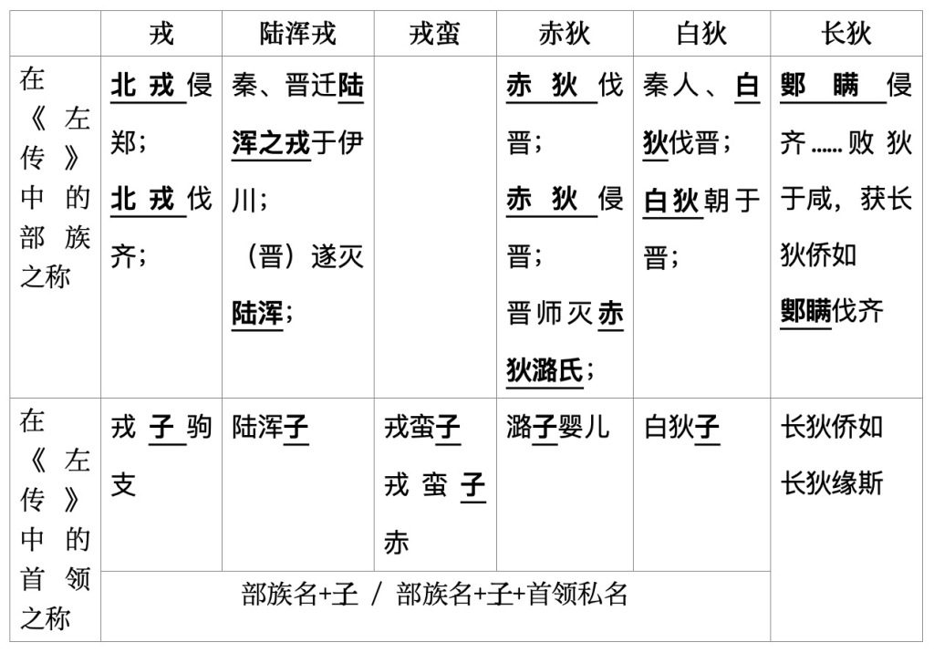 將《左傳》中的“長(zhǎng)狄”和其他真正的戎狄部族放在一起比較,我們可以看到二者的根本區(qū)別。請(qǐng)看下表: