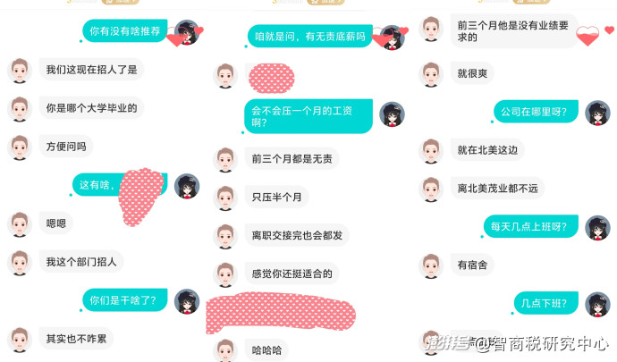 另一邊,還有網(wǎng)友表示:“我曾在某個(gè)社交App上,發(fā)布了關(guān)于求職的帖子,有個(gè)男的立刻私信我,要我去他店里當(dāng)?shù)觊L(zhǎng),讓我第二天晚上過去面談,我說過幾天進(jìn)城順路過去。結(jié)果第二天他又給我發(fā)消息,還好沒去面試。”