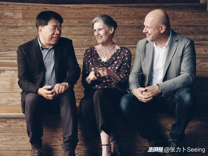 與第三十屆上海電視節(jié)白玉蘭獎電視劇類別海外電視劇單元評委亨克·漢德洛伊滕(右一)、胡杏兒(左一)相遇臨港滴水湖畔,同賞玉蘭盛景!