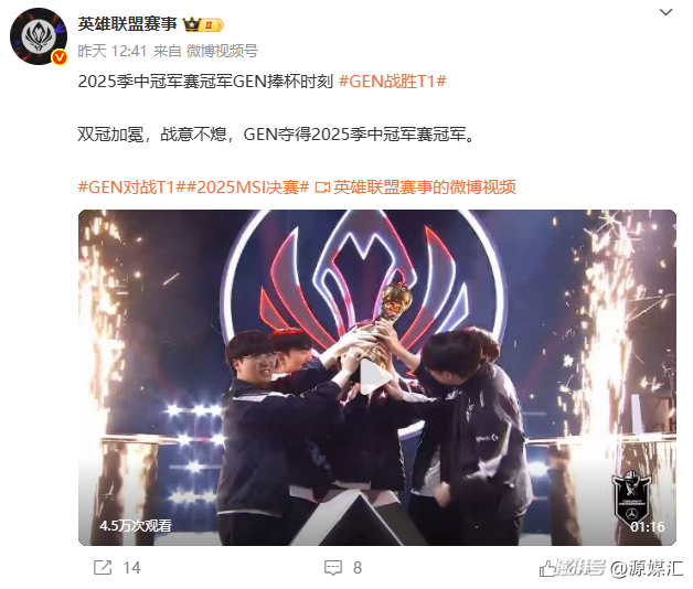 然而,就在同一周,英雄聯(lián)盟MSI決賽落幕,Gen.G戰(zhàn)隊(duì)以3-2險(xiǎn)勝T1,捧起冠軍獎(jiǎng)杯。這場(chǎng)由拳頭游戲主導(dǎo)的賽事,憑借數(shù)年的沉淀,依然是電競(jìng)迷心中的“圣杯”。