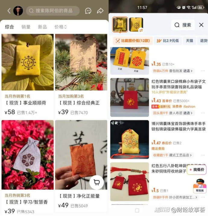 (左為陳阿伯店鋪售價(jià),右為淘寶類似香囊售價(jià))