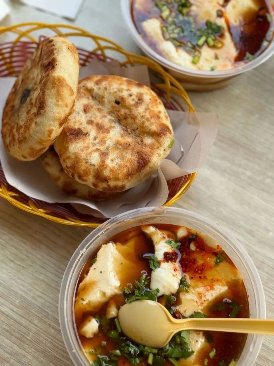 幾個(gè)剛出爐的肉火燒、一碗豆腐腦