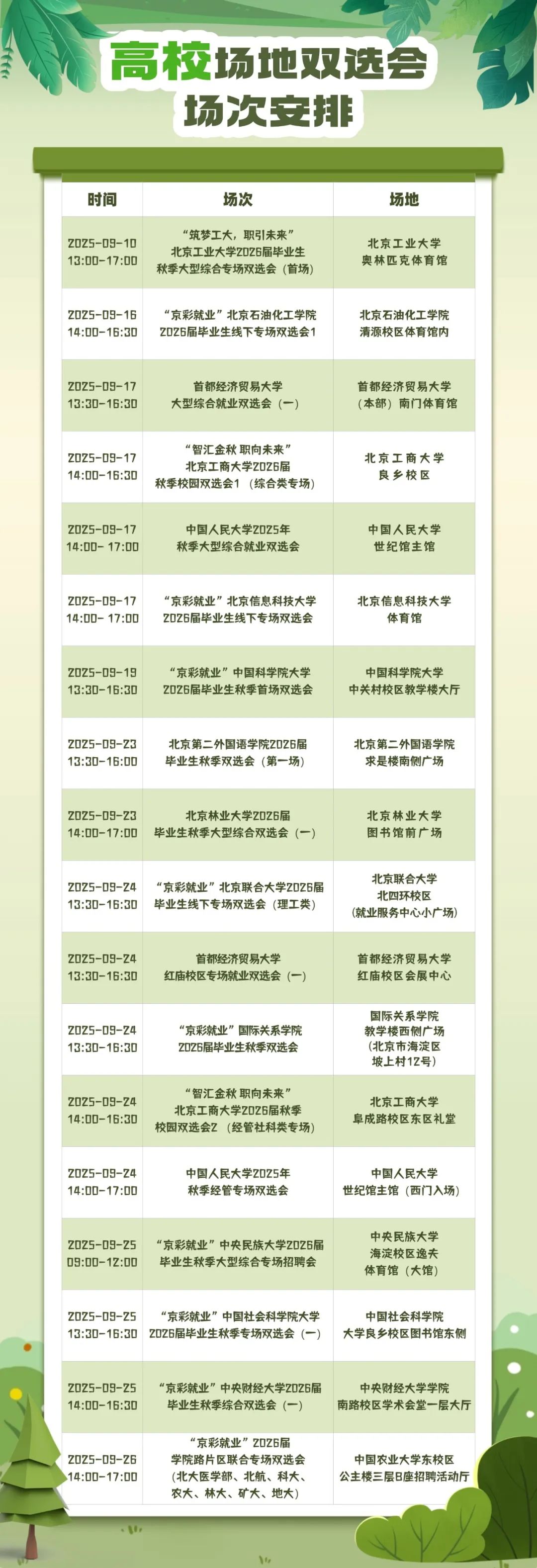 雙選會(huì)場(chǎng)次安排持續(xù)更新中,敬請(qǐng)關(guān)注!