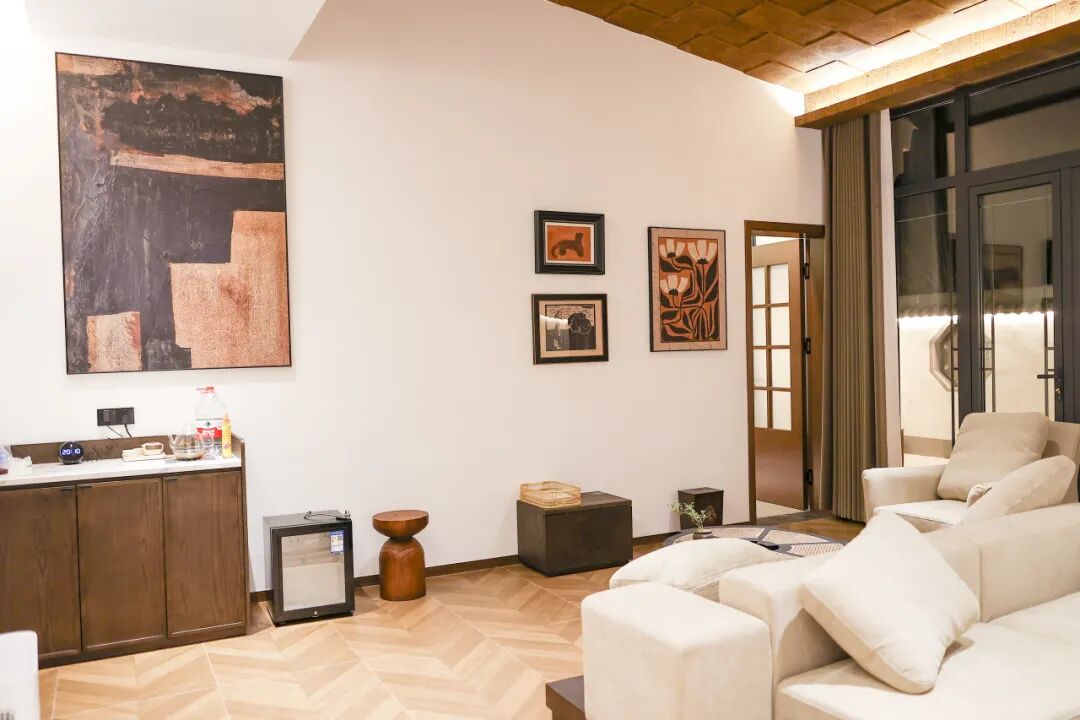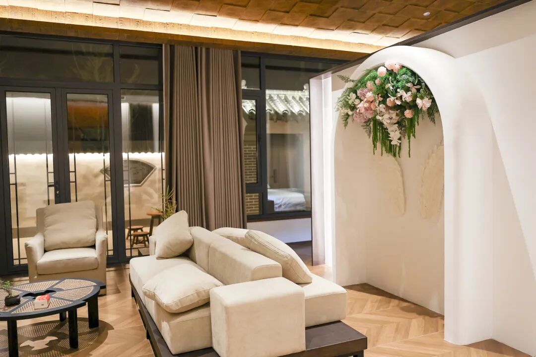 北方合院的肌理,在這里被釀成了詩。3683平方的天地間,6座小院依著“規(guī)整而不刻板”的布局靜靜佇立,青瓦鋪就的檐角攏住晨光,素白的院墻映著流云,連風穿過庭院的腳步都慢了幾分。