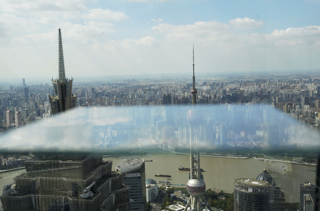 最后,我們來看看獨(dú)立攝影評(píng)論家施瀚濤先生怎么解讀陸元敏的作品。他說,“陸元敏用攝影重構(gòu)了上海這座城市,同時(shí)為我們?cè)炝艘粋€(gè)好夢(mèng)。里面有你我的歡喜、傷感、淚水,也有遺憾以及憧憬?!笔├蠋煋?dān)心這樣的表述過于抽象,不易理解。他拿出一張陸元敏拍攝的照片進(jìn)行剖析,他說,“這張照片里包含了各種空間和對(duì)于當(dāng)下非常具有象征意味的元素:過去的和當(dāng)下的,身邊的和遠(yuǎn)處的,日常的和異常的,數(shù)字的和現(xiàn)實(shí)的,管理的和被管理的。這些元素相互穿插疊加在一起,讓人竟一時(shí)恍惚,不知身處何處?!?/p>