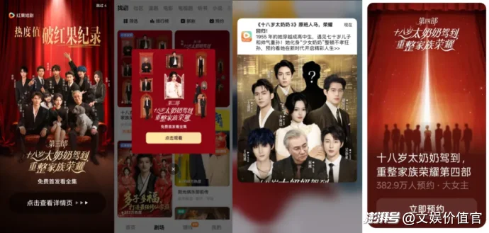 無論是產(chǎn)品層面對于觀眾追劇體驗的優(yōu)化,還是通過預(yù)約功能為續(xù)作積蓄熱度勢能,新作上線時對于粉絲的喚醒激活,都能看出紅果對于系列短劇創(chuàng)作的支持鼓勵,為系列IP作品的成功,起到了不可忽視的推動作用。