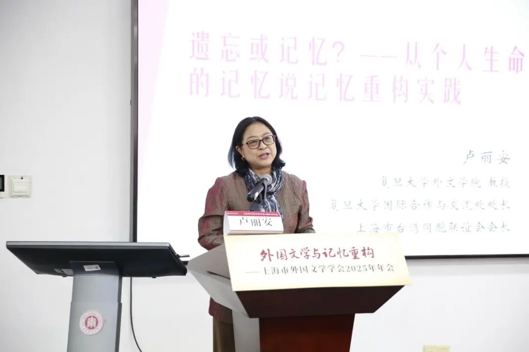 副會(huì)長(zhǎng)、復(fù)旦大學(xué)盧麗安教授在她題為《遺忘或記憶?——從個(gè)人生命中的記憶說(shuō)記憶重構(gòu)實(shí)踐》的報(bào)告中,結(jié)合家族史與記憶理論,指出記憶不僅是個(gè)人認(rèn)知的基礎(chǔ),更是構(gòu)建集體認(rèn)同與文化共識(shí)的紐帶。她聚焦兩岸關(guān)系,呼吁挖掘與重構(gòu)被遺忘或被沉默的歷史,促進(jìn)情感聯(lián)結(jié)與文化認(rèn)同。她特別強(qiáng)調(diào),在中國(guó)的外國(guó)文學(xué)教學(xué)與研究場(chǎng)域,學(xué)術(shù)工作與記憶構(gòu)建之間有著深厚的內(nèi)在聯(lián)系,記憶研究不僅是理論探討,更是連接歷史與當(dāng)下、學(xué)術(shù)與社會(huì)的橋梁。