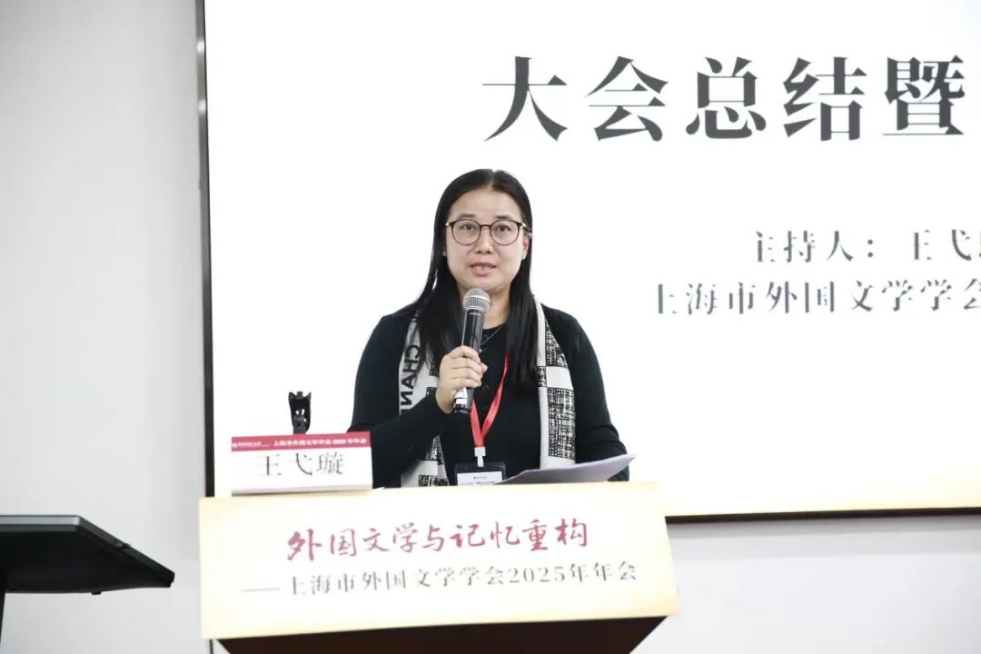 王弋璇秘書長(zhǎng)總結(jié)了會(huì)議的兩個(gè)關(guān)鍵詞:精彩紛呈、溫暖熱烈。她認(rèn)為本次會(huì)議具有高度開(kāi)放性和互動(dòng)性,見(jiàn)證了學(xué)術(shù)共同體的密切交流,并重點(diǎn)感謝上海市社聯(lián)和兩家出版社對(duì)本屆年會(huì)的大力支持。最后,王弋璇秘書長(zhǎng)概括說(shuō)本次會(huì)議將鼓舞上海市外國(guó)文學(xué)界的學(xué)者們以本土性為根基、對(duì)話性為橋梁、創(chuàng)造性為引擎,共同書寫“外國(guó)文學(xué)與記憶重構(gòu)”研究的新篇章。