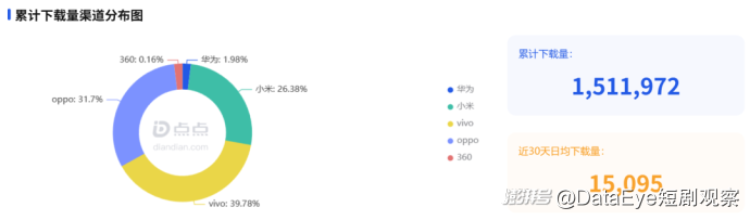 下載量方面,點(diǎn)點(diǎn)數(shù)據(jù)顯示,各安卓應(yīng)用商店累計下載量151.2萬次,其中小米應(yīng)用商店下載量39.9萬次,vivo應(yīng)用商店下載量60.1萬次,OPPO應(yīng)用商店下載量47.9萬次。
