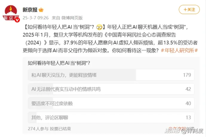 更多網(wǎng)友認為和AI聊天無壓力