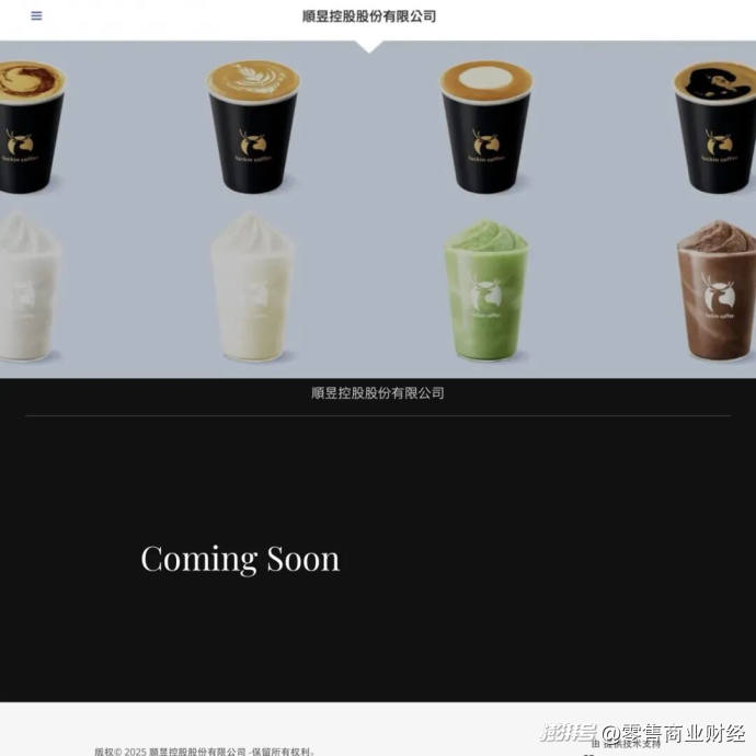 據(jù)招聘網(wǎng)站相關(guān)信息顯示,瑞幸咖啡或是通過(guò)一家名為“順昱控股”的代理公司在中國(guó)臺(tái)灣市場(chǎng)展開(kāi)業(yè)務(wù),此前有媒體報(bào)道稱(chēng)順昱控股的官網(wǎng)就展示了八款帶有“l(fā)uck in coffee”商標(biāo)的飲品。但據(jù)「零售商業(yè)財(cái)經(jīng)」12月1日查詢(xún)發(fā)現(xiàn),目前官網(wǎng)僅有一句:Coming Soon。