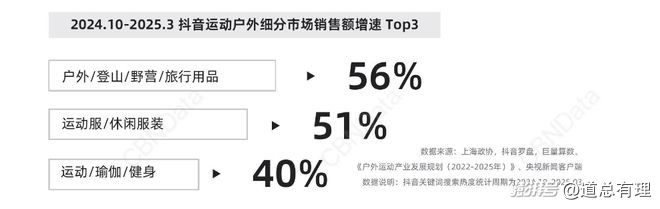 《2025運(yùn)動(dòng)戶外圈層人群洞察白皮書》顯示,今年抖音【運(yùn)動(dòng)/戶外記錄】相關(guān)內(nèi)容的搜索熱度同比增長(zhǎng)了745%。快手戶外話題相關(guān)視頻播放量超過(guò)1028.3億,小紅書戶外相關(guān)話題瀏覽量145.0億。