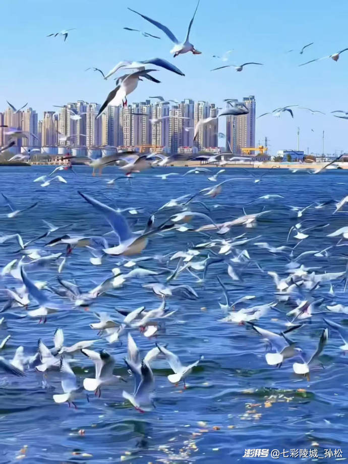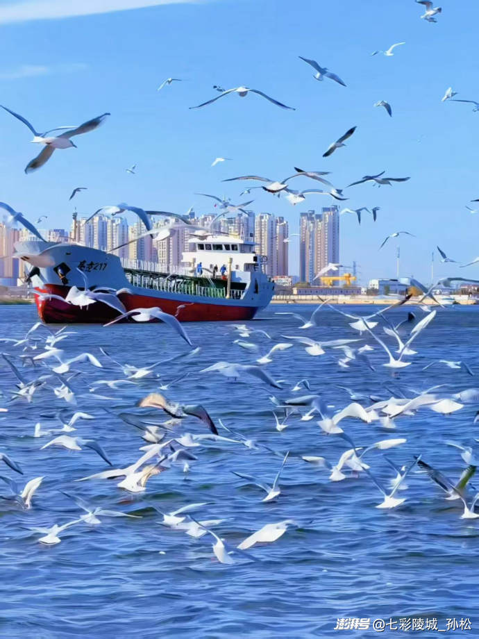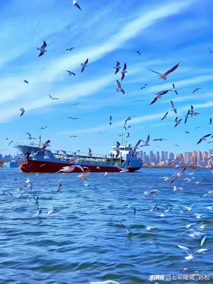 海鷗們時而俯沖而下,掠過波光粼粼的海面,捕捉躍起的魚蝦;時而盤旋上升,發(fā)出清脆的鳴叫,仿佛在分享捕獵的喜悅。它們的翅膀?qū)挻笥辛?,每一次振翅都顯得那么從容,仿佛在書寫一首無聲的詩篇。