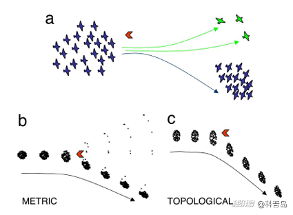 通過對比不同密度的鳥群,他們發(fā)現(xiàn),鳥與鳥之間的相互作用是拓?fù)涞模?/p>
