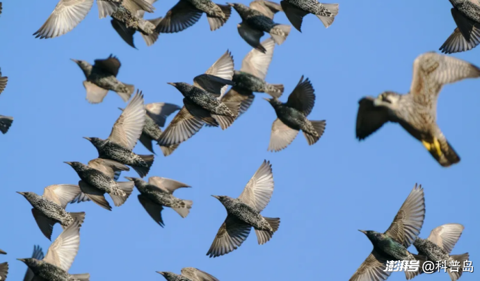 不僅如此,他們的研究還回答了一個困擾人們許久的問題:為什么這樣巨大的鳥群中有上萬只飛鳥,可是當(dāng)游隼等捕食者襲來時,它們卻能做到如此迅速地集體響應(yīng),就好像真的所有的鳥“共享”了同一個大腦似的?