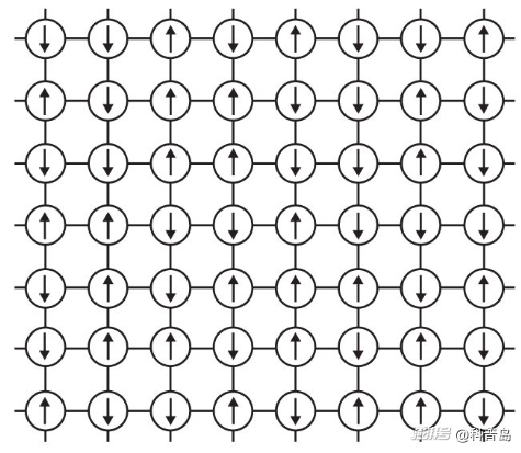 一種描述磁鐵內(nèi)部結(jié)構(gòu)的模型示意圖。這種情況下,磁矩只有朝上或者朝下兩個方向。 圖片來源:《隨椋鳥飛行》,喬治·帕里西