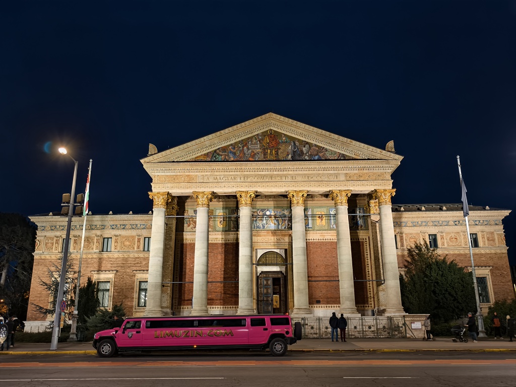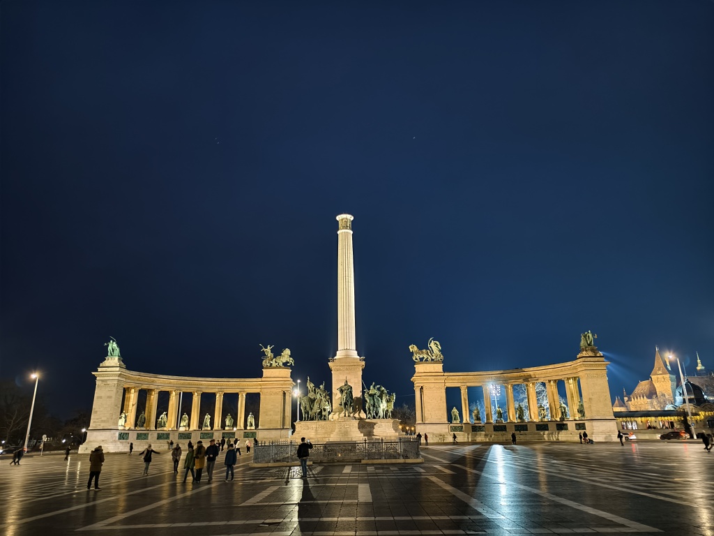 我對英雄廣場的最深刻記憶是一個冬日夜晚,它燈光璀璨,灑在每座雕像身上?,F(xiàn)代美術(shù)館門口有兩輛加長轎車,極為搶眼。廣場后的市民公園人聲鼎沸,塞切尼溫泉與溜冰場都是布達(dá)佩斯人極愛的去處。