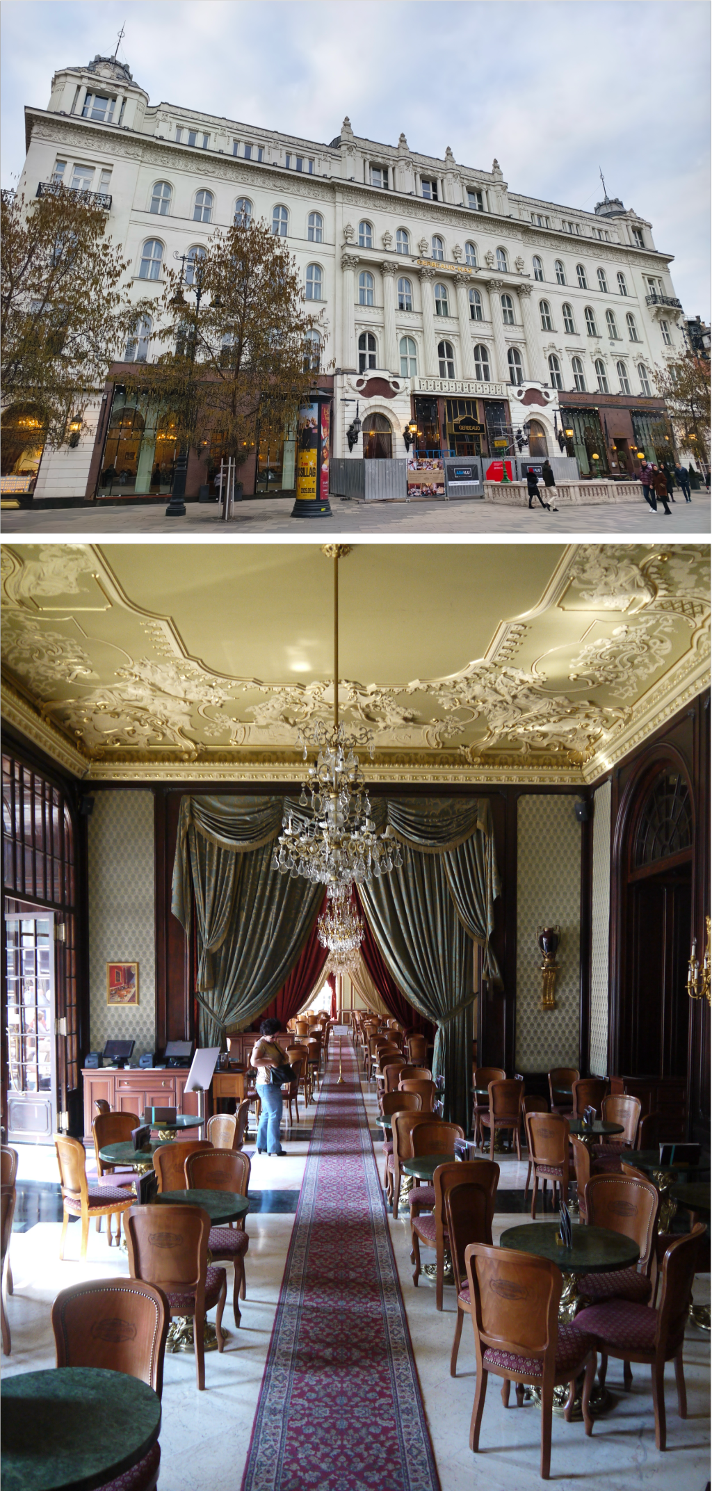 佩斯最著名的咖啡館當(dāng)屬紐約咖啡館。1894年,紐約人壽保險公司匈牙利總部決定投資建造一座大樓,命名為“紐約宮”。大樓底層開設(shè)了一家咖啡館,開業(yè)當(dāng)天就被命名為“紐約咖啡館”。它的內(nèi)部極其精美,融合文藝復(fù)興和巴洛克風(fēng)格,從護(hù)欄到臺階,從壁畫到雕像,從天花到地面,完全沒有任何死角。它的咖啡和芝士蛋糕,百年來一直被布達(dá)佩斯人所熱愛。1877年開業(yè)的中央咖啡館,曾是布達(dá)佩斯最重要的知識中心之一,眾多作家與學(xué)者都是這里的常客,也是沙龍舉辦地。