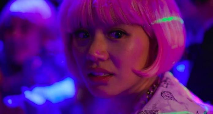 《日掛中天》是《白日焰火》的遙遠(yuǎn)回響,由兩者的共通之處可以管窺“后六代”時(shí)期中國(guó)電影沖擊國(guó)際電影節(jié)的敘事策略。回顧受到《白日焰火》影響的電影譜系,女性形象流變是一條重要線索。婁燁的《風(fēng)中有朵雨做的云》黑色電影風(fēng)格明顯,女性形象也頗具癥候性。作為弒親主犯的小諾最后在某種程度上被年輕的警探所救贖,她的母親,為情人姜紫城多次犯罪的林慧有自首情節(jié)并毀于瘋狂,考慮到后者丈夫?qū)λ┘拥谋┝?,困于精神病院的林慧仍是可以被同情的?duì)象。小諾對(duì)正常家庭關(guān)系的渴望竟使她完全認(rèn)同于母親的情人,并將連阿云給予她的善意錯(cuò)認(rèn)為母性關(guān)懷。似乎創(chuàng)作者為了讓小諾具有犯罪動(dòng)機(jī),強(qiáng)行將她和林慧以及連阿云集結(jié)成受害者女性同盟。行兇時(shí)小諾化妝成粉色頭發(fā)的連阿云,低像素的影像證據(jù)下飄過的人形如同鬼影,再次暗示這是被害的連阿云在復(fù)仇。這也是她在替林慧復(fù)仇,是女性在復(fù)仇。小諾可以是任何人,唯獨(dú)沒有自我。她作為青少年受互聯(lián)網(wǎng)不良影響的理由不能完全解釋個(gè)體的極端行為,混亂的家庭關(guān)系也未能支撐人物心理。小諾被警察發(fā)現(xiàn)時(shí)的眼淚是求助的標(biāo)志,表面上她不想暴露,她的存在似乎只是為了暴露成人世界的罪惡。