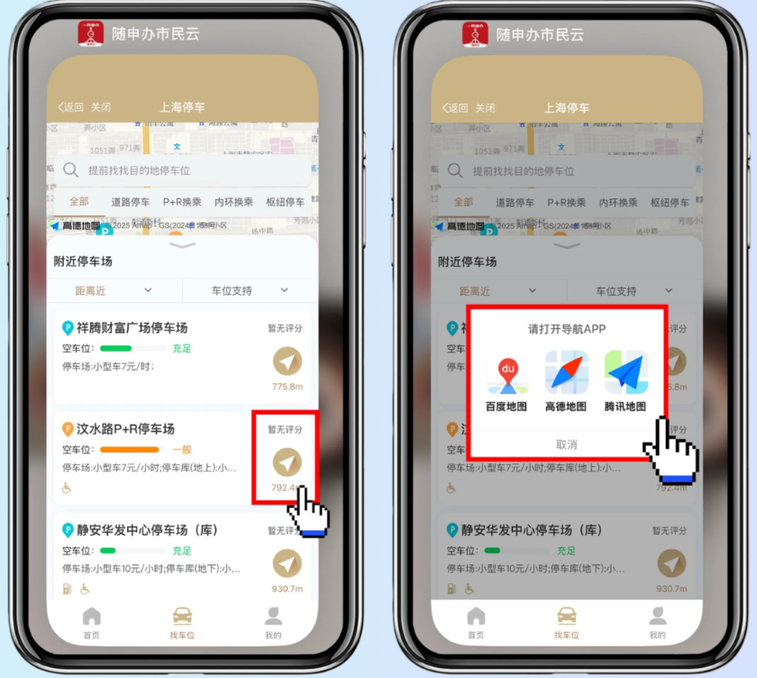 在“上海停車”挑選好您想前往的停車場,并點擊“導(dǎo)航”選項,您可以選擇您偏好的導(dǎo)航應(yīng)用,比如百度地圖、高德地圖或騰訊地圖等。