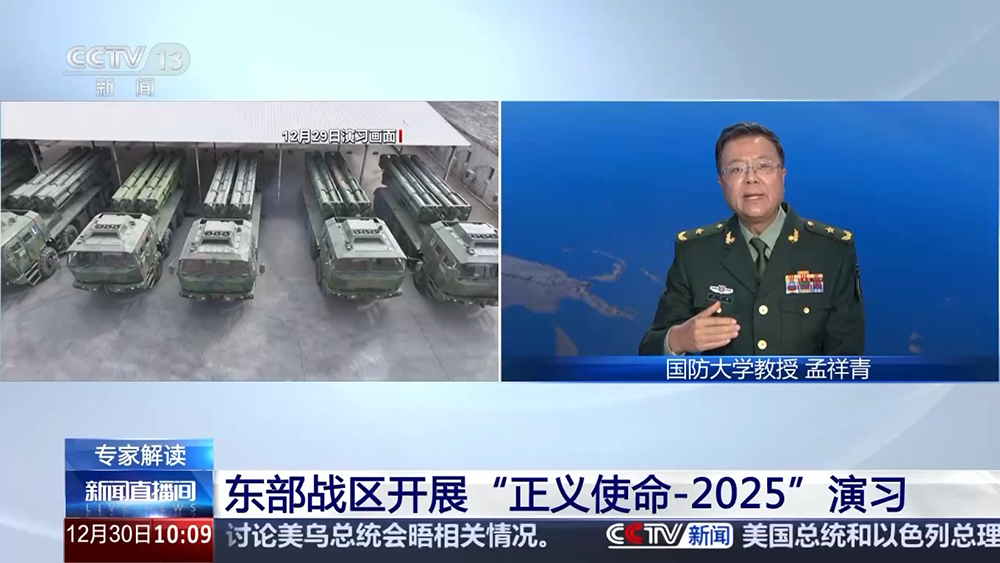 12月29日開始,中國人民解放軍東部戰(zhàn)區(qū)組織陸軍、海軍、空軍、火箭軍等兵力,位臺灣海峽、臺島北部、臺島西南、臺島東南、臺島以東等區(qū)域,開展代號為“正義使命-2025”的聯(lián)合演習(xí)。