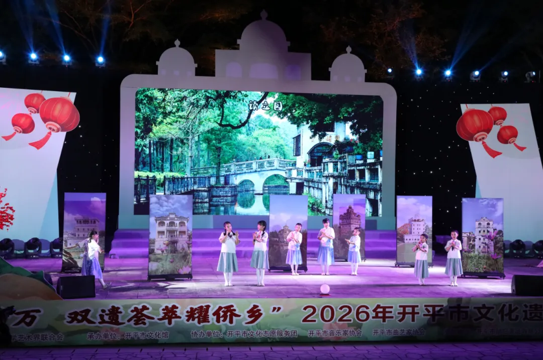 夜幕降臨,群眾文藝表演精彩紛呈。1月1日晚上,“文旅賦能百千萬 雙遺薈萃耀僑鄉(xiāng)”2026年開平市文化遺產(chǎn)主題原創(chuàng)文藝晚會在開平市人民公園羅馬小劇場隆重舉行。獅鼓表演、開平童謠、開平民歌、民間雜技、粵曲新唱......一系列以開平文化遺產(chǎn)為主題的原創(chuàng)節(jié)目輪番上演,讓市民群眾近距離感受開平文化遺產(chǎn)底蘊和獨特魅力。
