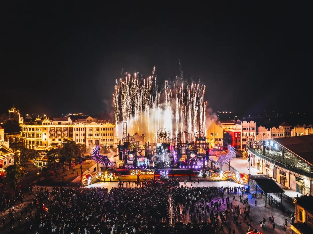 而在另一邊,夢回開平·僑海華韻(開平不夜城)同樣人氣爆棚。元旦假期,街區(qū)累計接待游客4.56萬人次。從白天到夜晚,不夜城連續(xù)安排無人機(jī)煙花秀、百場精彩演出、機(jī)器人炫技、多重驚喜抽獎、孔明燈祈愿放飛、野炊焗雞盛宴、馬戲嘉年華等多重活動,集活力、奇趣與煙火氣于一體,彰顯了開平夜間經(jīng)濟(jì)的巨大潛力。