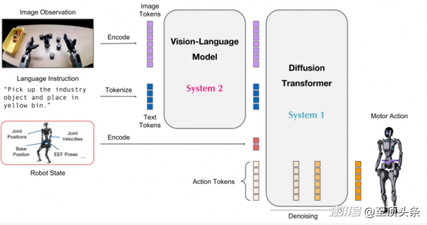 同時(shí),動(dòng)作生成部分的擴(kuò)散變換器(DiT)由16層升級(jí)為32 層,更好地對(duì)連續(xù)動(dòng)作序列進(jìn)行去噪和生成。相比1.5版本移除了VLM 后置的Transformer適配器,使視覺(jué)理解與動(dòng)作生成耦合更緊密;此外,模型輸出相對(duì)動(dòng)作狀態(tài),而非絕對(duì)關(guān)節(jié)角度,提高了跨形態(tài)適應(yīng)性。