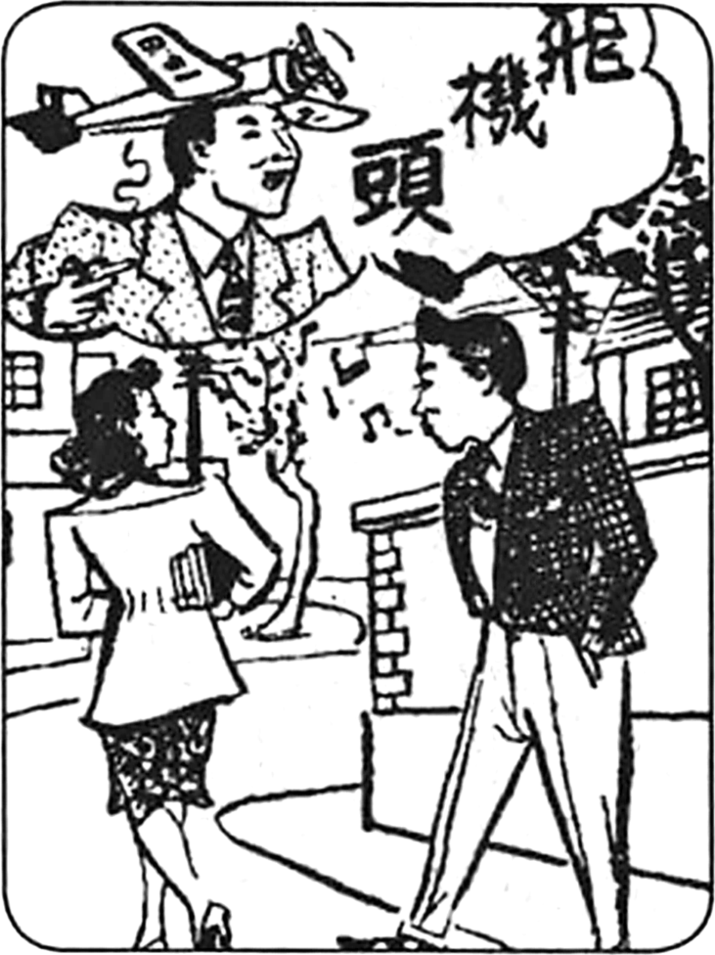 舊時(shí)洋學(xué)生與上海灘的白領(lǐng)常稱那些標(biāo)新立異、打扮得引人注目的人為“這位阿figure朋友”,或是評論某些前衛(wèi)的裝扮時(shí)來一句“迭(上海話,意為‘這’)個(gè)人蠻飛的”。40年代從國外傳來一種新式舞蹈,“兩人對舞,搖頭晃腦,抽肩膀,扭屁股”,上海人改曲譜名為“滿場飛”,亦可以從中窺見“飛”字的獨(dú)特內(nèi)涵。在時(shí)人眼中,褲腳管細(xì)得像筆管、花得耀眼的襯衫、尖頭皮鞋乃至乘勢凌空的“飛機(jī)頭”,不過是愛漂亮的都市兒女的生活剪影。上海著名消閑小報(bào)《小日報(bào)》還有一撰稿者常以“阿飛”自稱,“阿飛”在舊上海之流行可見一斑。