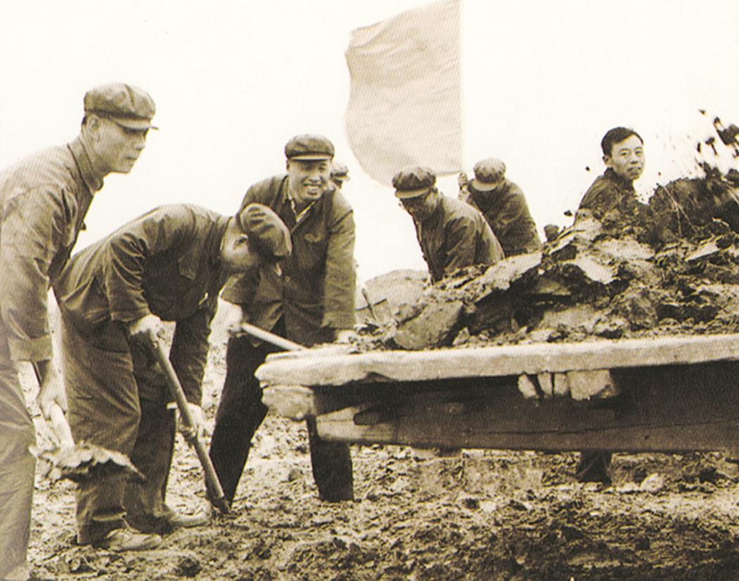 工地上,傅海寬等同志扛著鐵鍬與民工同吃同住;60多歲的大娘偷偷跑到工地給大家做飯,腰腿疼得厲害也不肯回去……肩挑手抬,一鍬一鍬,八萬(wàn)干部群眾用雙手挖希望之河。