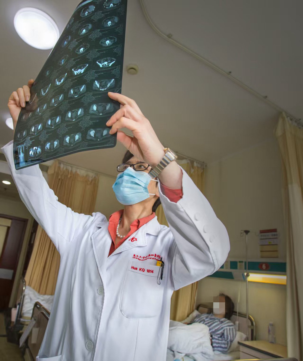 華克勤教授為一名患者看片。澎湃新聞?dòng)浾?陳斯斯 圖